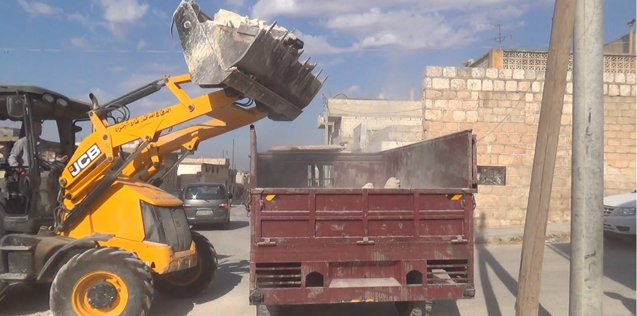 1. إزالة الأتربة و الأنقاض من الشوارع نتيجة القصف بالبراميل المتفجرة و الطيران الحربي